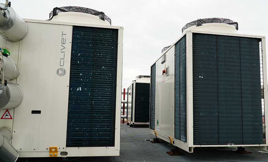 Passage de la classe C à la classe A en équipant le bâtiment d'une isolation thermique et en remplaçant le système de chauffage existant par un système Clivet complet basé sur des pompes à chaleur polyvalentes, des pompes à chaleur eau/eau à haute température, des chaudières et un système de gestion du confort et de l'énergie Intelliplant.
