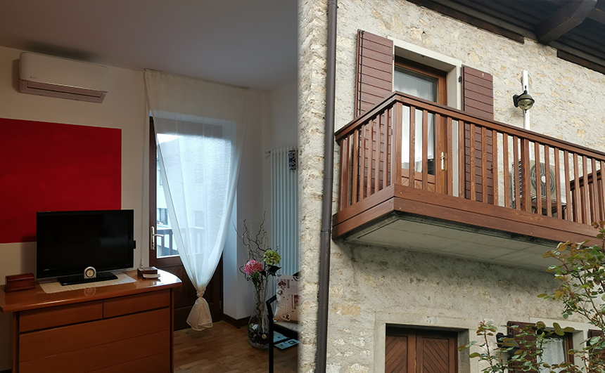 Nel 2020 i proprietari si sono decisi ad installare due sistemi MONOSplit: un Cristallo in zona giorno, scelto per il design particolarmente elegante e per la possibilità di comando da remoto attraverso smartphone, e un Essential2 in camera da letto, dove era sufficiente un sistema comandabile con telecomando.